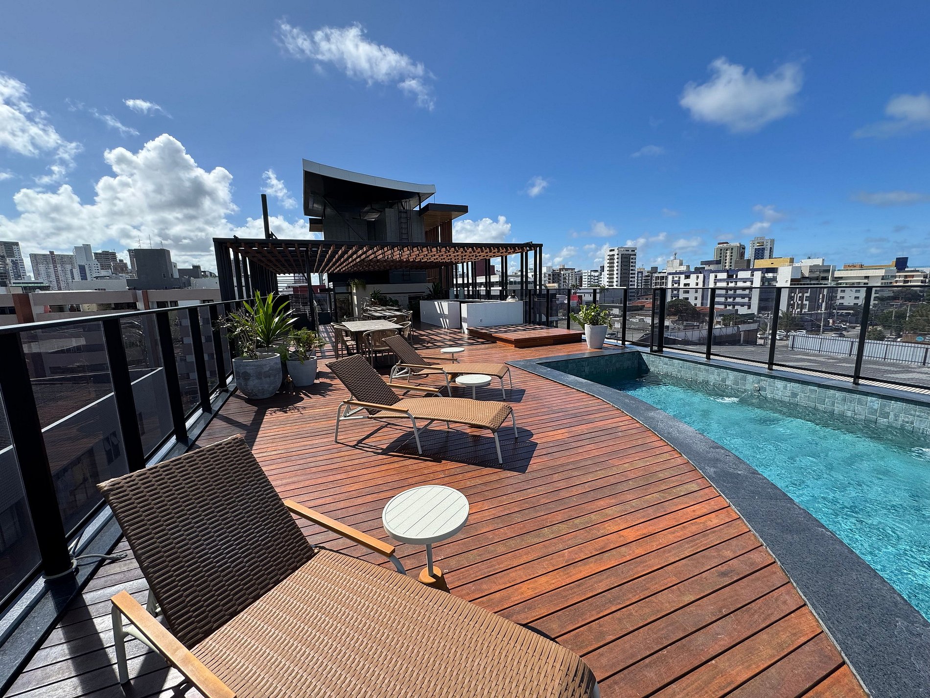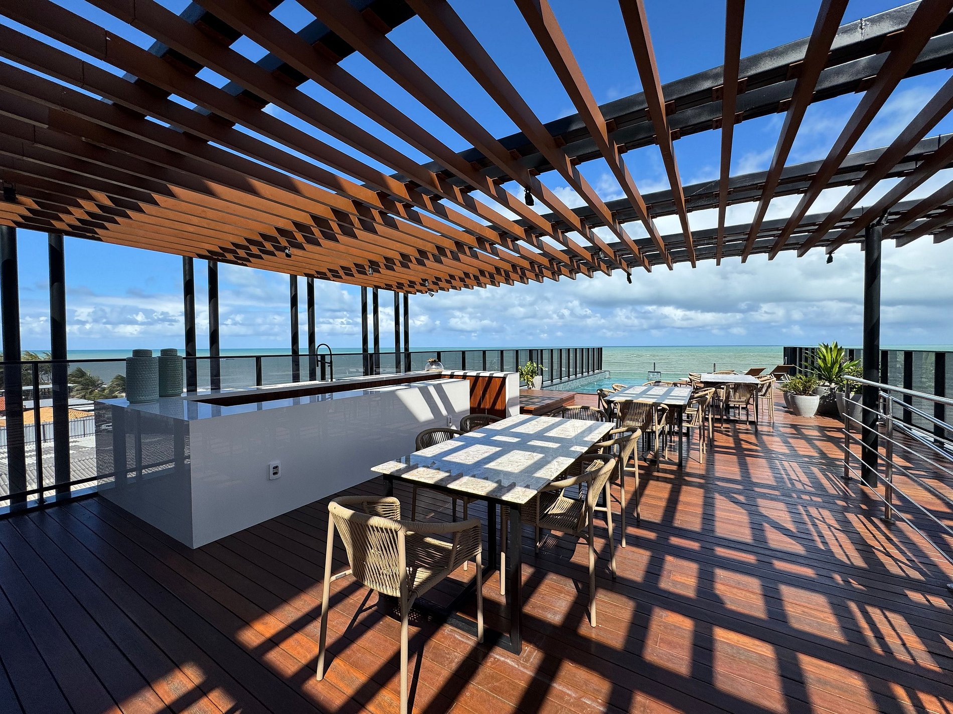 O empreendimento possui um super rooftop com piscina, cadeiras e vista mar de tirar o fôlego. Além de: