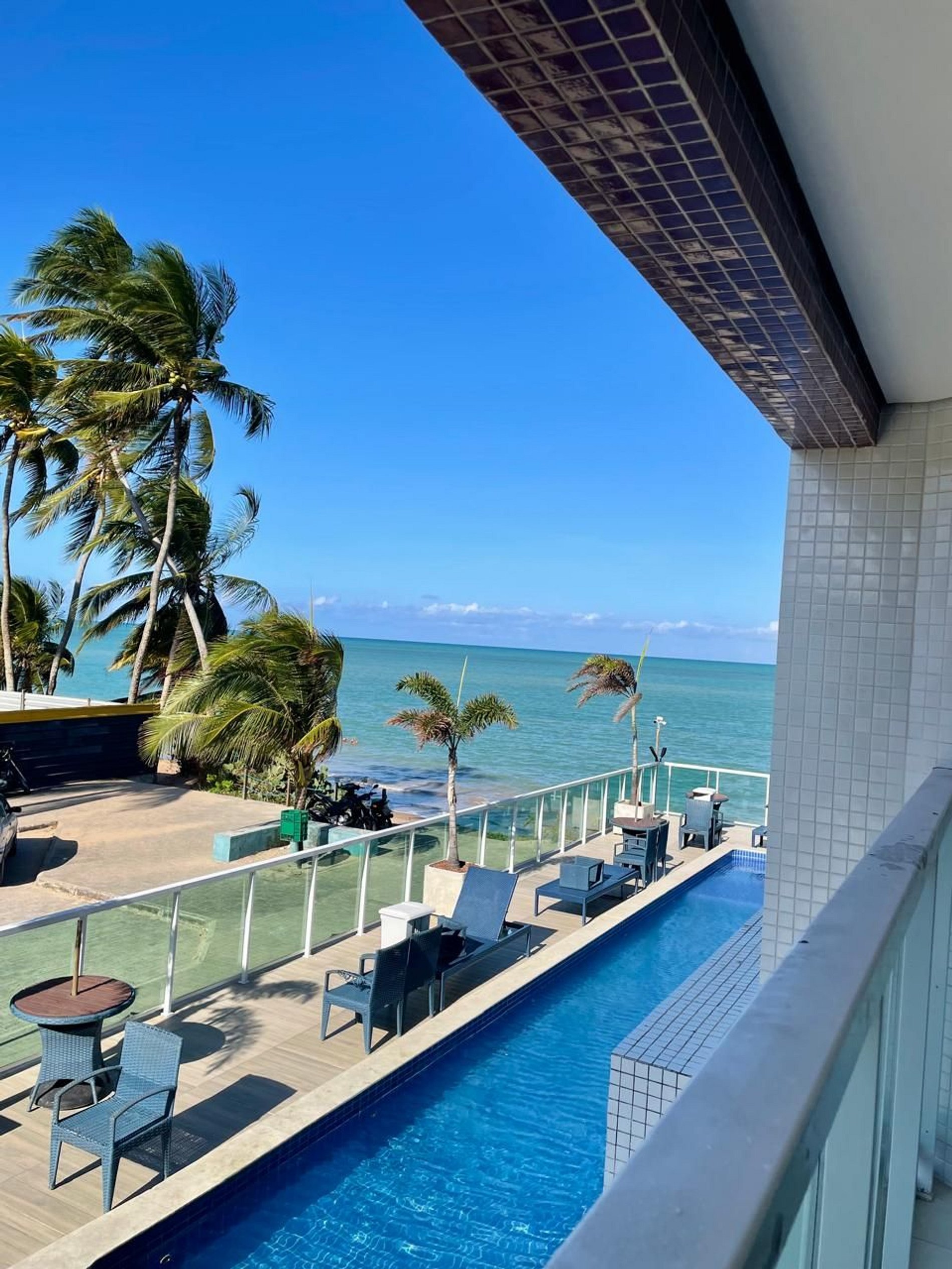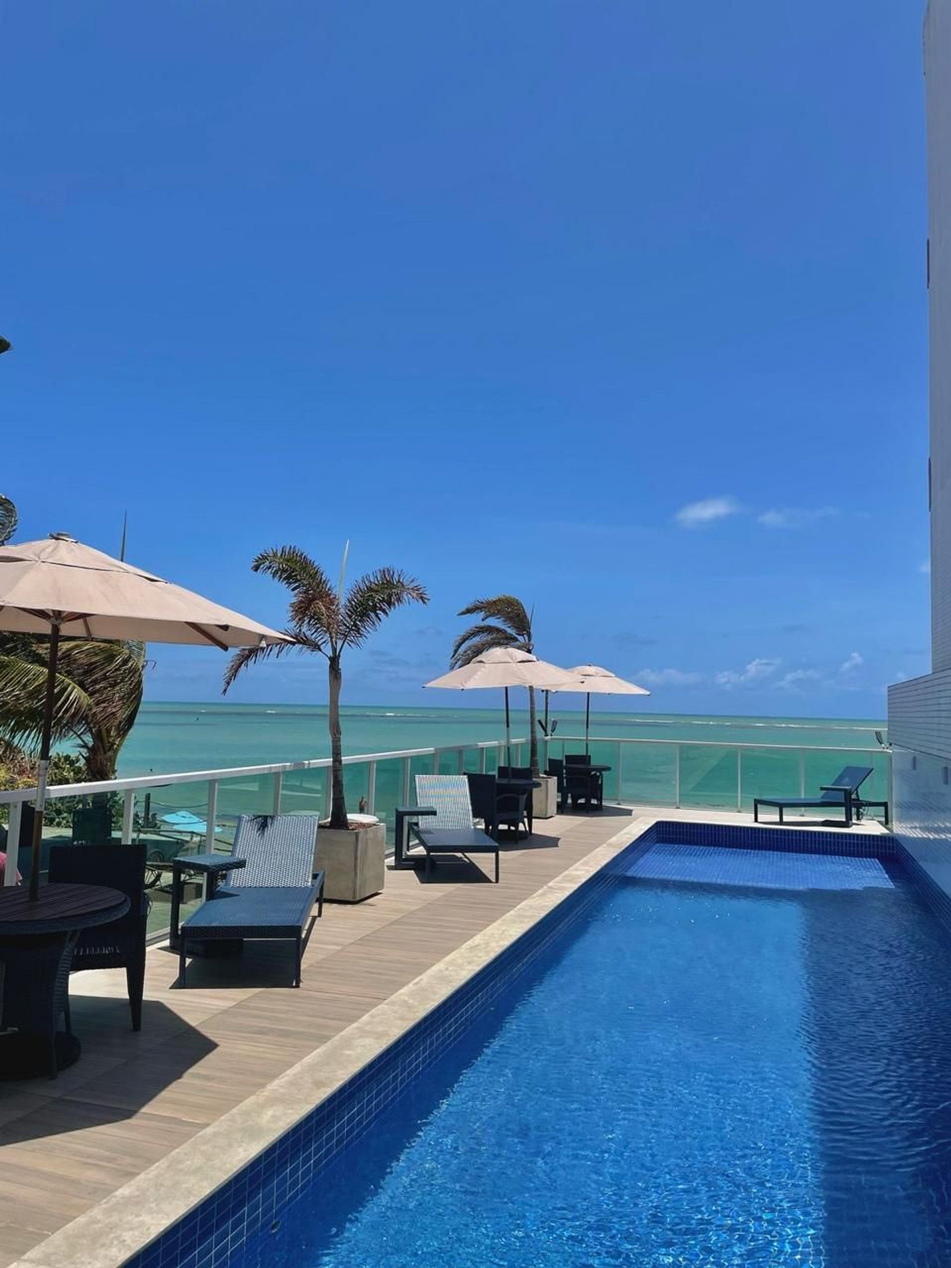 - Varanda e piscina com vista para o mar;