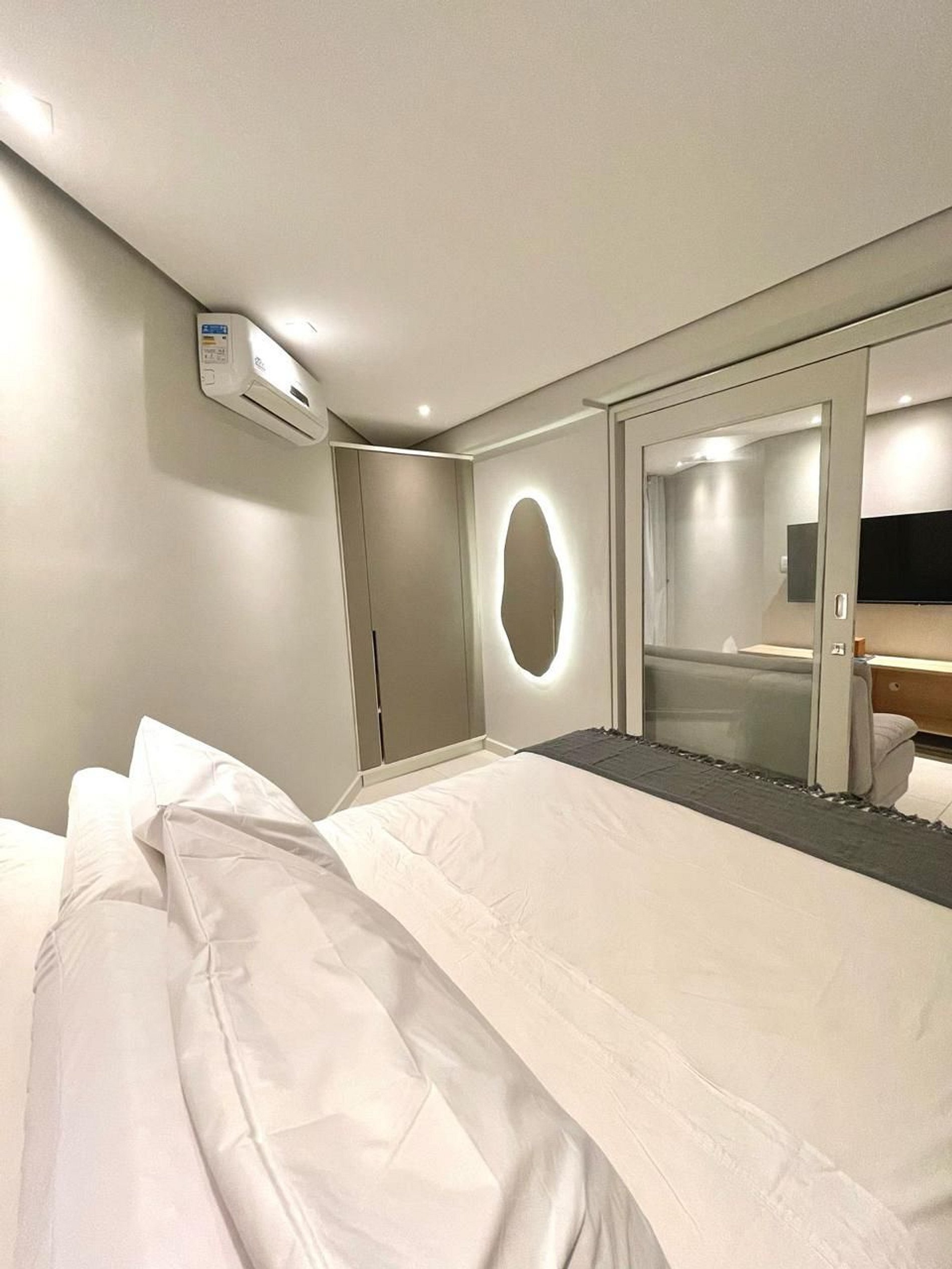 - Dois quartos com colchões de alto padrão, ar-condicionado e cortinas blackout;