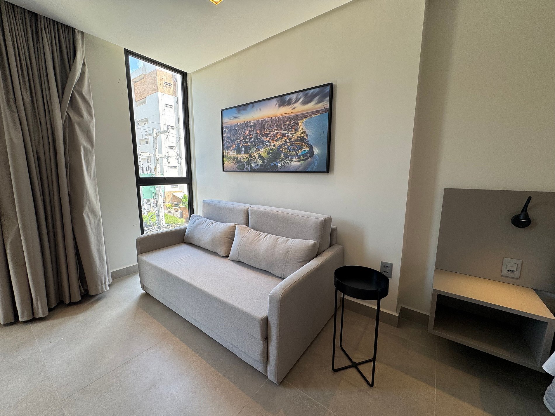 Flat de LUXO novíssimo e completo no Acqua Tambaú, prédio de alto padrão no coração de Tambaú vizinho ao Shopping Pirâmide. Equipado com cozinha completa, cama box Queen de alto padrão, mesa de trabalho, Smart TV de 50", enxoval de alta qualidade. Conforto, sofisticação e praticidade para uma experiência única.