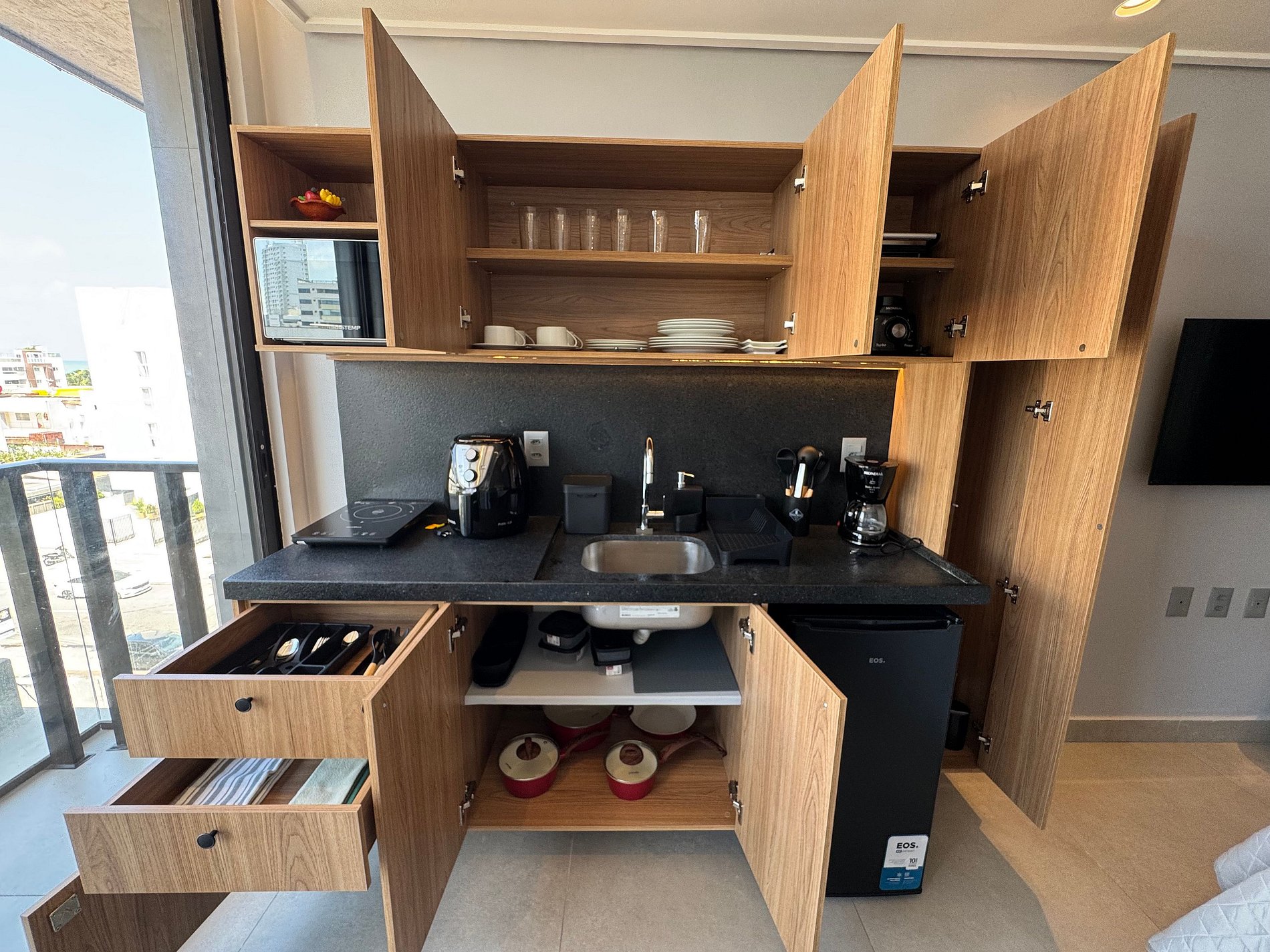 Flat de LUXO novíssimo e completo no Acqua Tambaú, prédio de alto padrão no coração de Tambaú vizinho ao Shopping Pirâmide. Equipado com cozinha completa, cama box Queen de alto padrão, mesa de trabalho, Smart TV de 50", enxoval de alta qualidade. Conforto, sofisticação e praticidade para uma experiência única. Apartamento possui varanda.