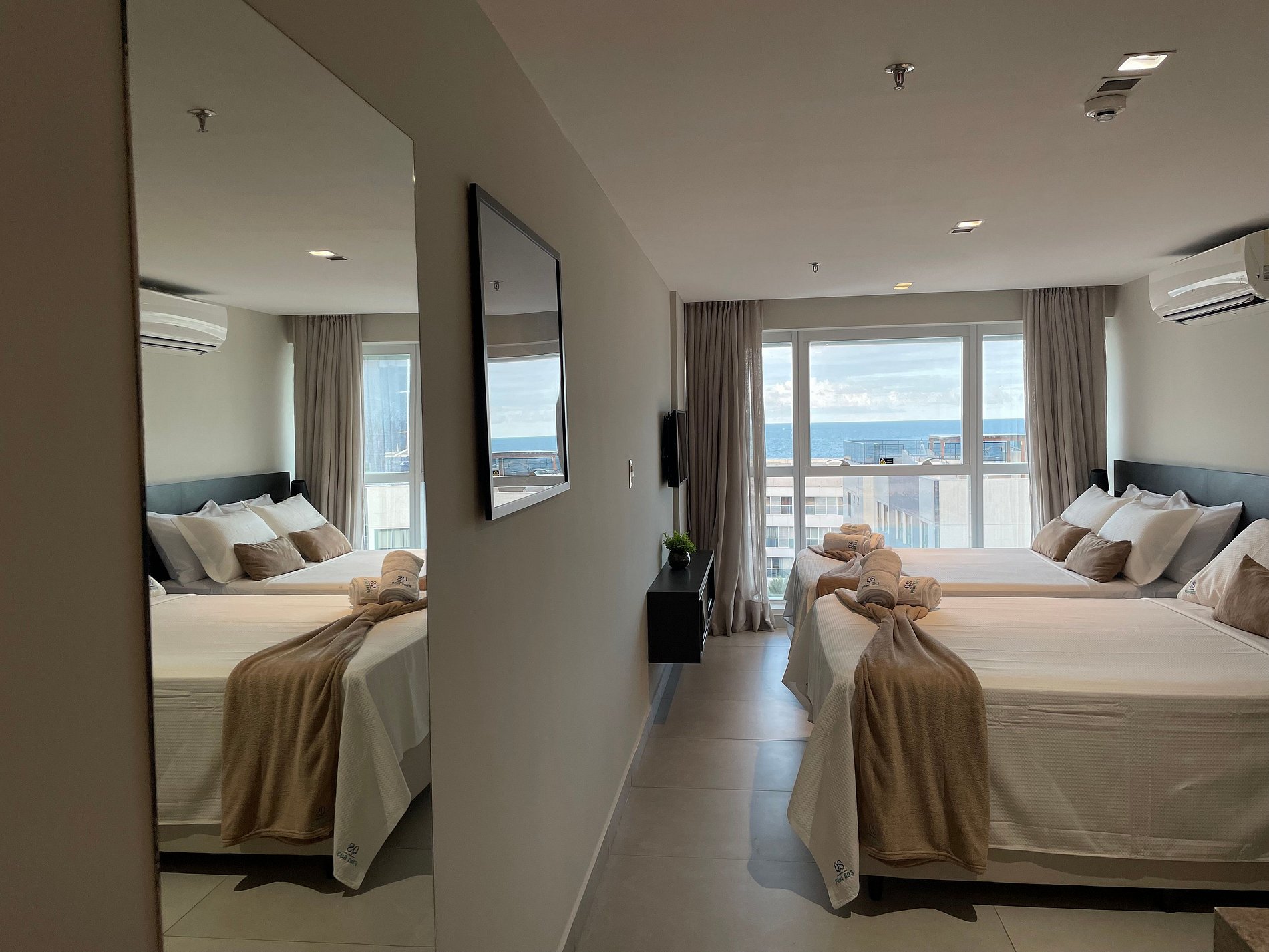 Flat no 8º andar com vista incrível para o mar de Tambaú. Ideal para até 4 pessoas, com 2 camas de casal, cozinha equipada e ambiente confortável. A apenas um andar, aproveite o rooftop com piscina de borda infinita e vista panorâmica da orla. Conta com TV, frigobar, micro-ondas, cafeteira, sanduicheira, mixer, secador e ferro. Perfeito para quem busca praticidade, ótima localização e uma experiência inesquecível em João Pessoa.