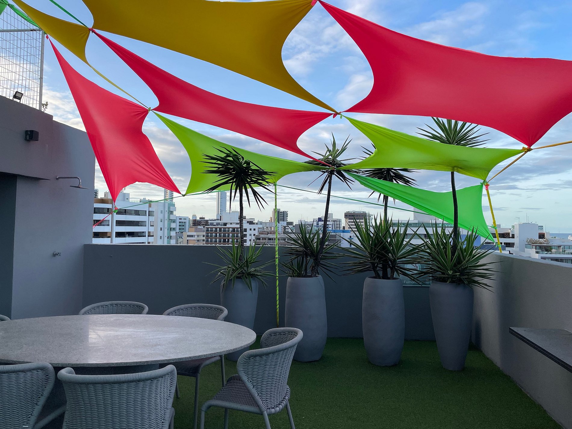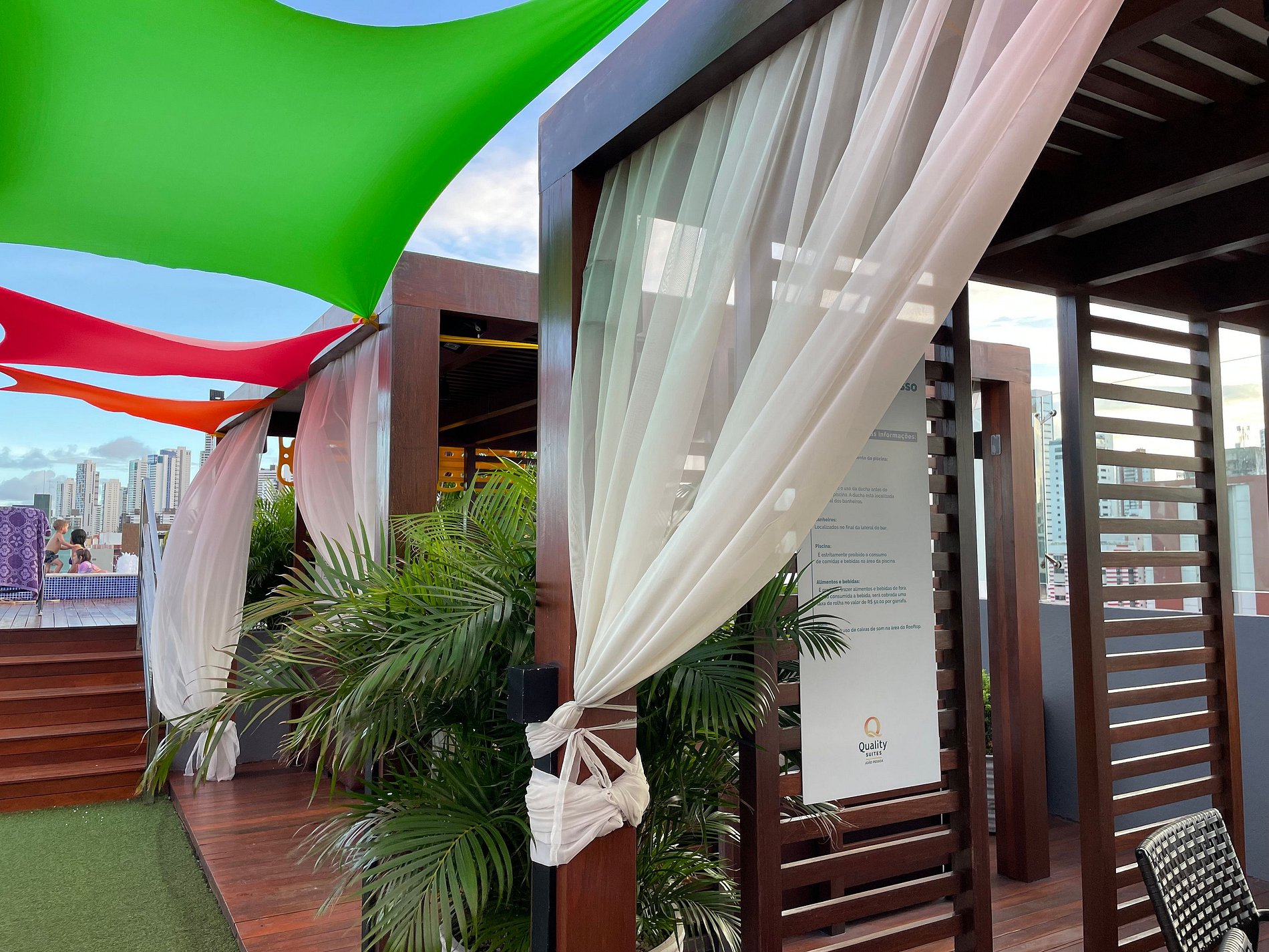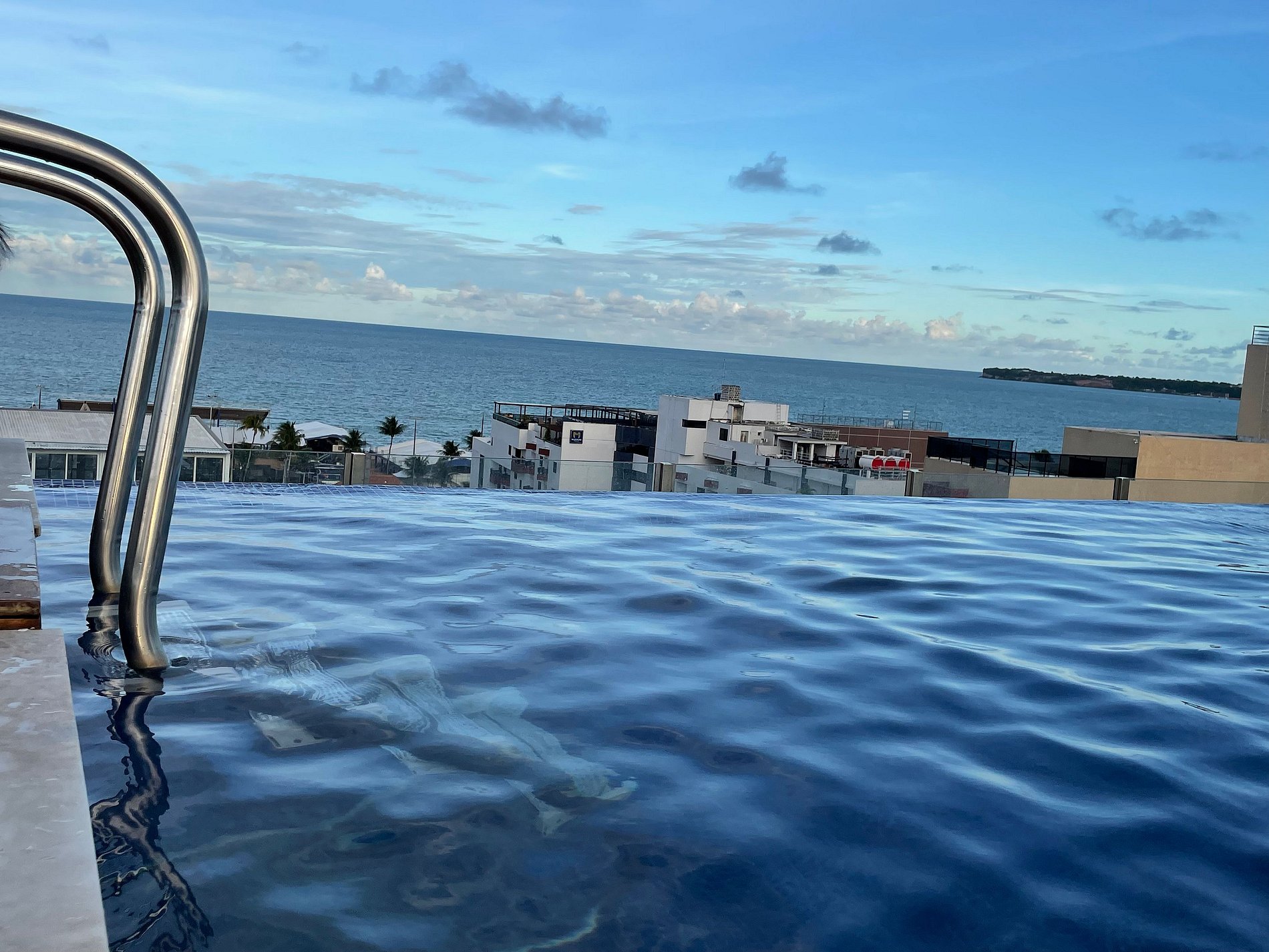 O rooftop é simplesmente espetacular — uma área exclusiva com piscina de borda infinita, vista panorâmica da orla e espaços aconchegantes para relaxar. Um cenário perfeito para curtir o pôr do sol e viver momentos inesquecíveis em João Pessoa.