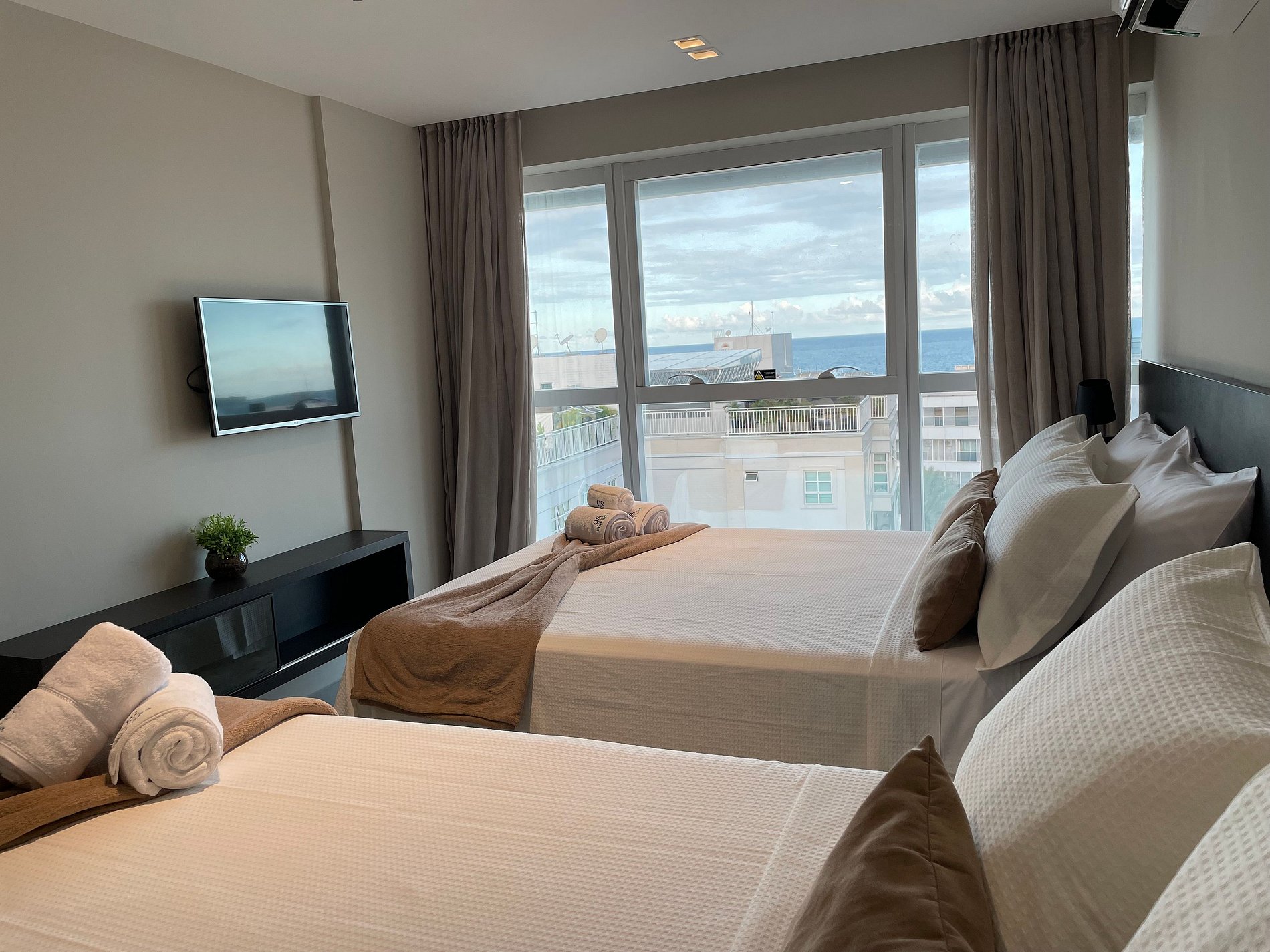 Flat no 8º andar com vista incrível para o mar de Tambaú. Ideal para até 4 pessoas, com 2 camas de casal, cozinha equipada e ambiente confortável. A apenas um andar, aproveite o rooftop com piscina de borda infinita e vista panorâmica da orla. Conta com TV, frigobar, micro-ondas, cafeteira, sanduicheira, mixer, secador e ferro. Perfeito para quem busca praticidade, ótima localização e uma experiência inesquecível em João Pessoa.