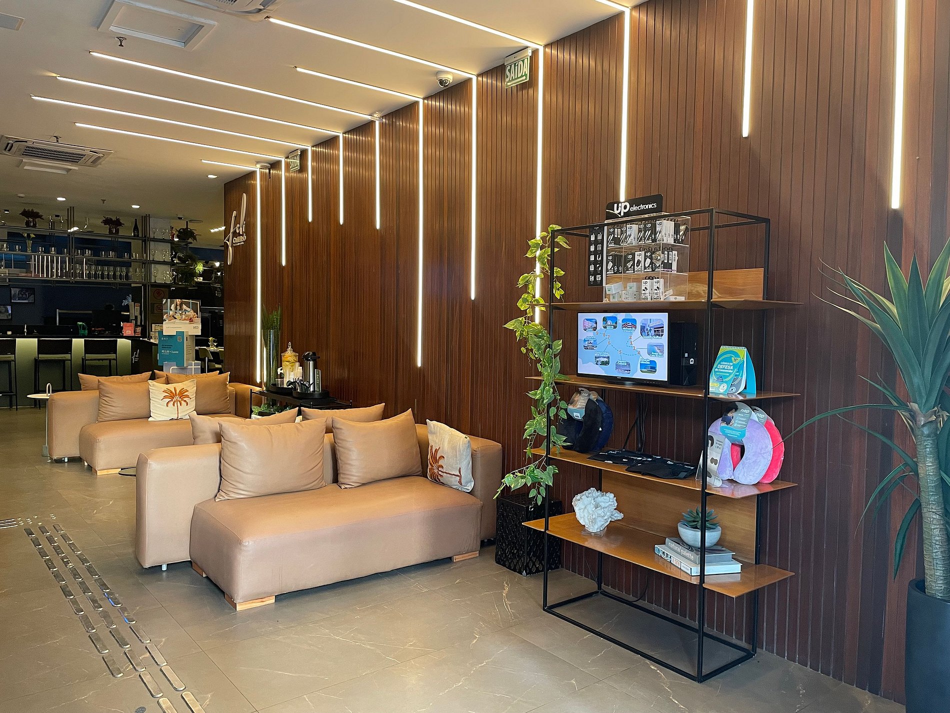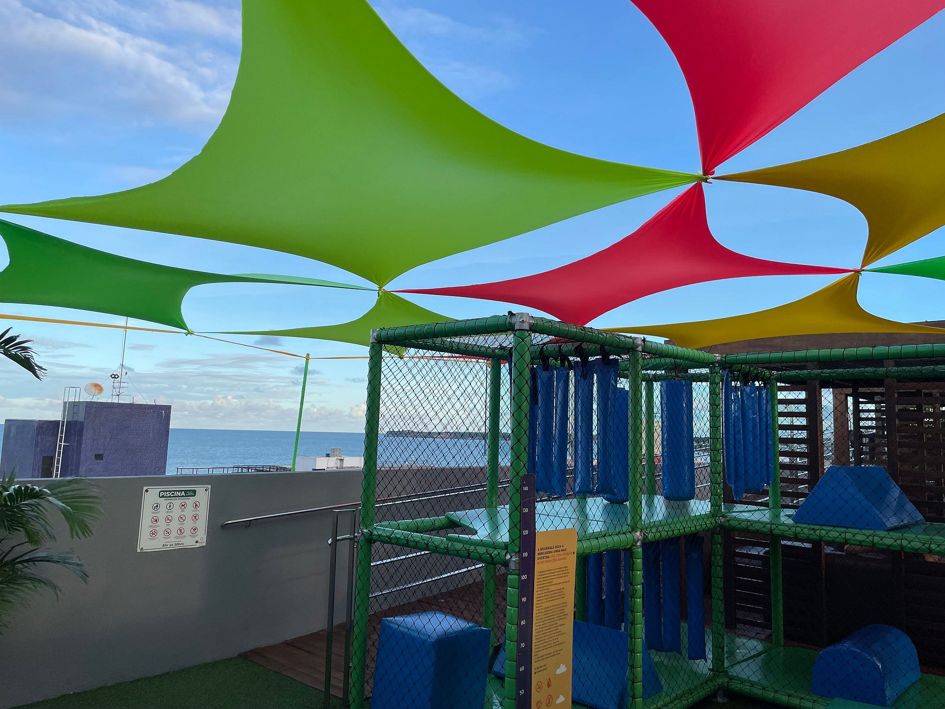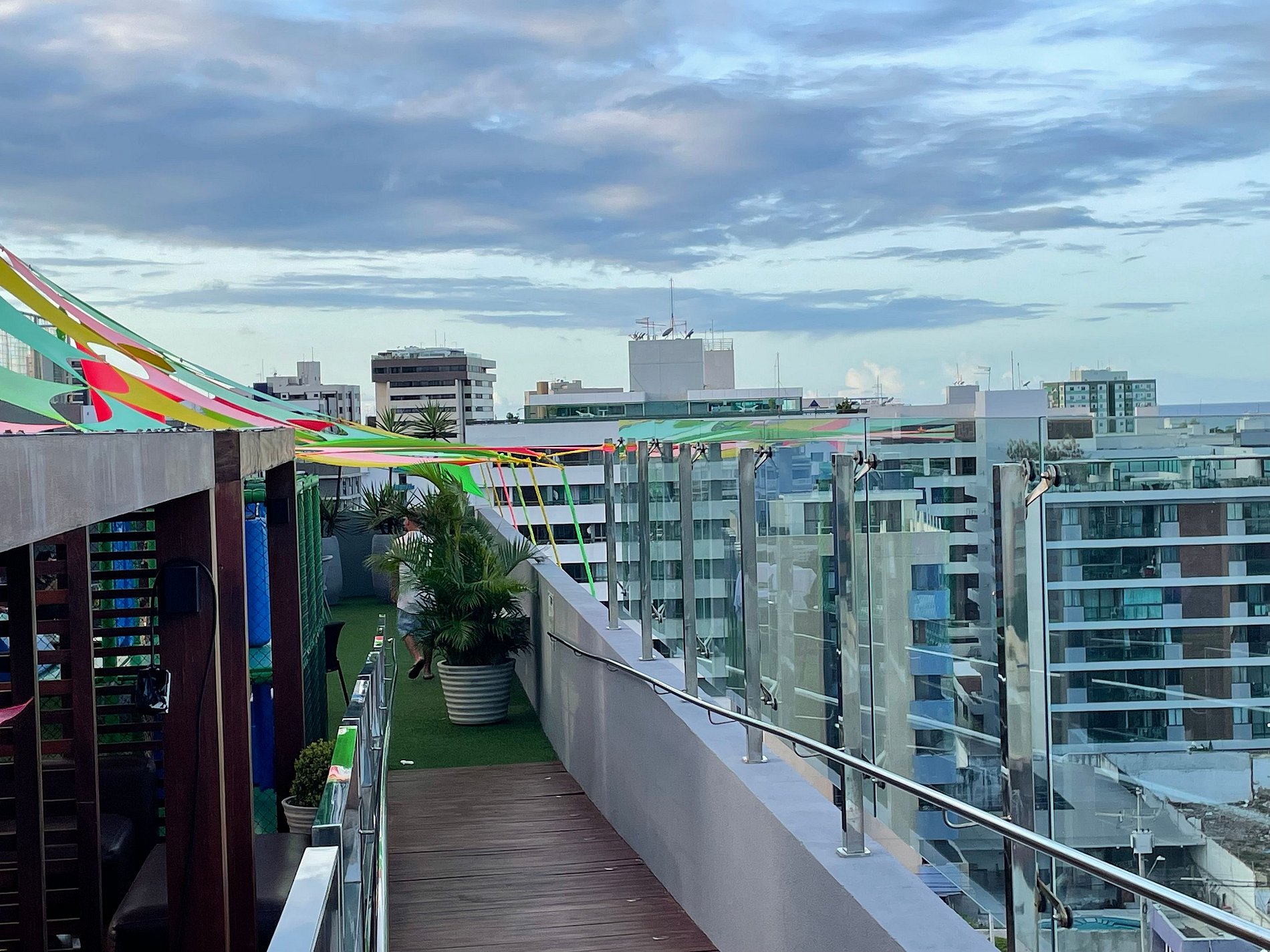 O rooftop é simplesmente espetacular — uma área exclusiva com piscina de borda infinita, vista panorâmica da orla e espaços aconchegantes para relaxar. Um cenário perfeito para curtir o pôr do sol e viver momentos inesquecíveis em João Pessoa.