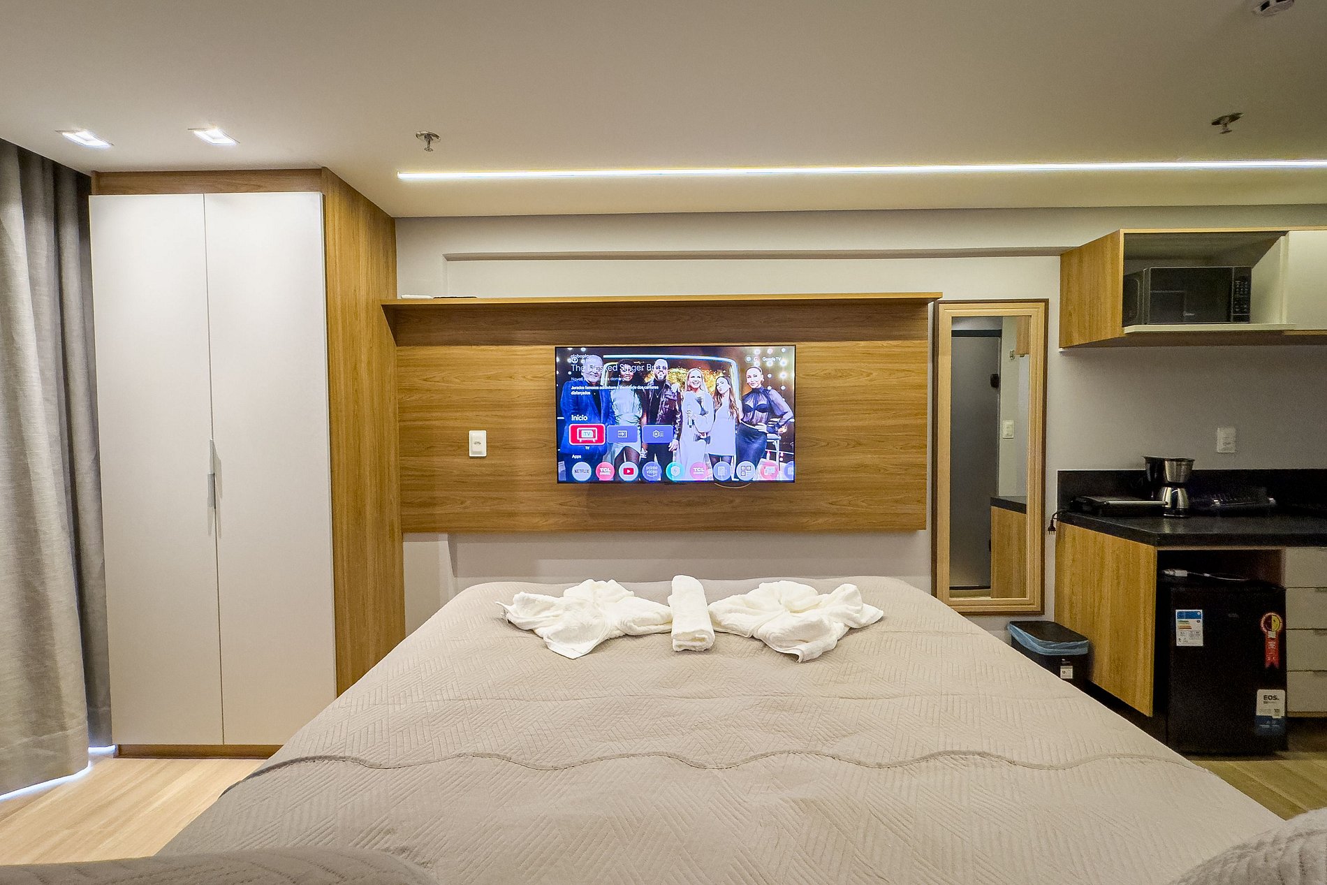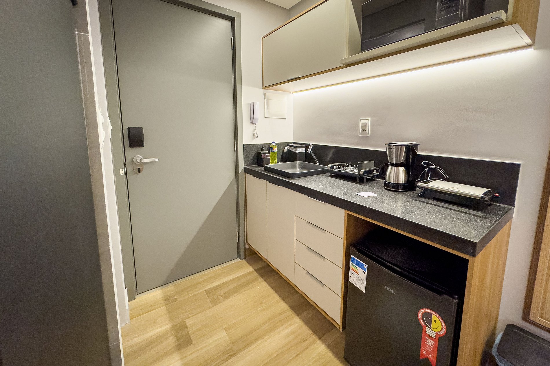 Totalmente equipado, o flat oferece: