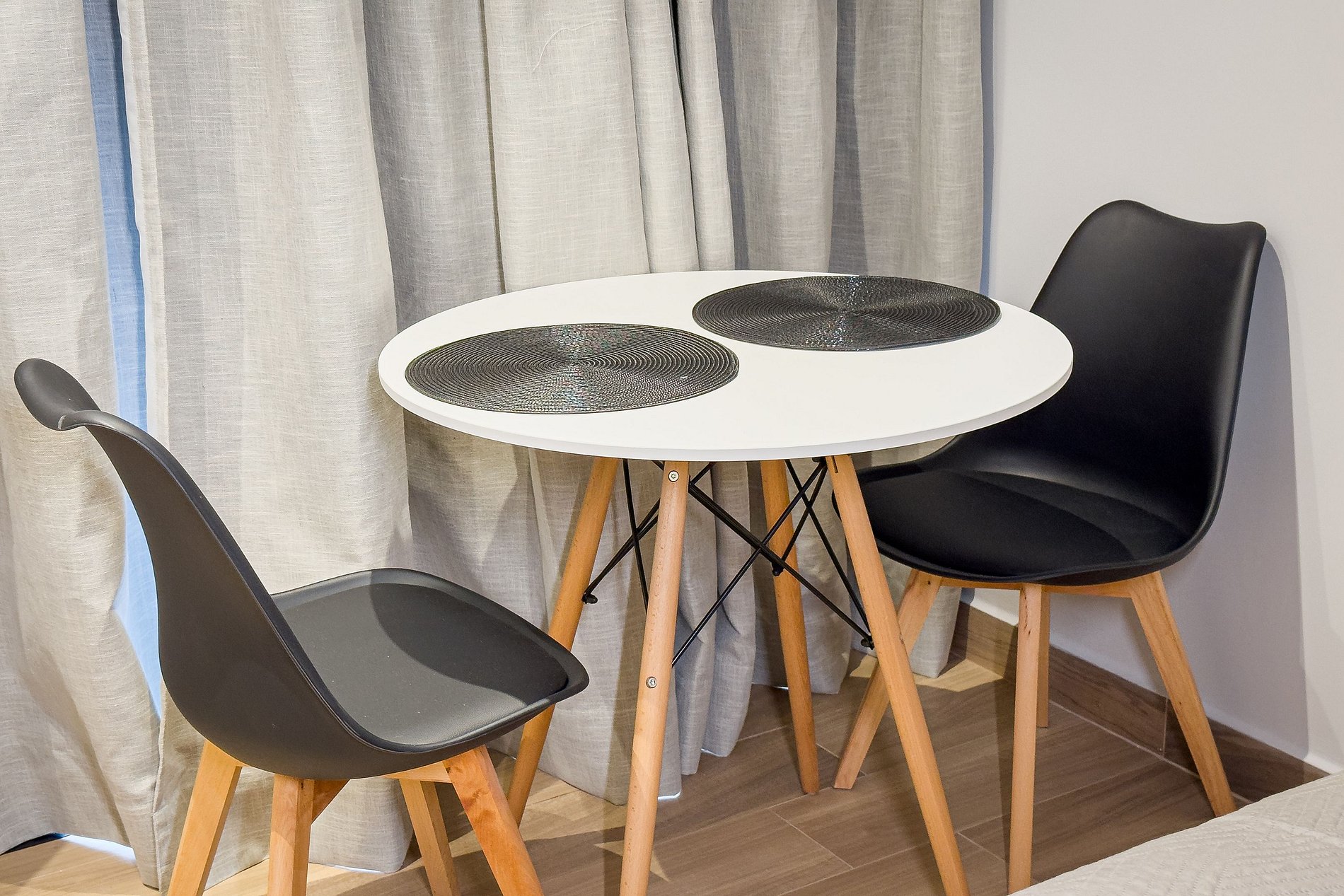 - Mesa e cadeiras para refeições ou home office;