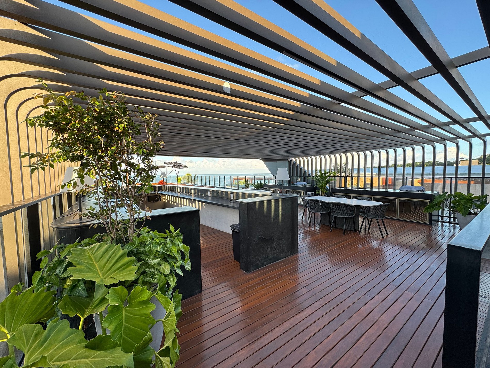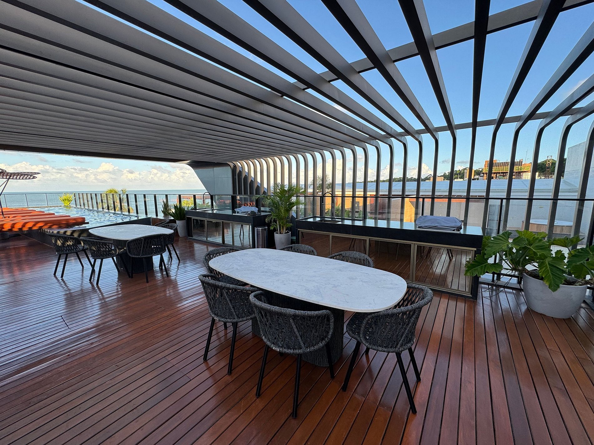 Você vai desfrutar de uma área comum de altíssimo padrão com cobertura com vista para o mar com piscina aquecida, churrasqueiras, bar, som ambiente. Uma academia completa e sauna, além de lavanderia e itens como bicicletas, stand-up pedal, caiaque e equipamentos esportivos e de praia.
