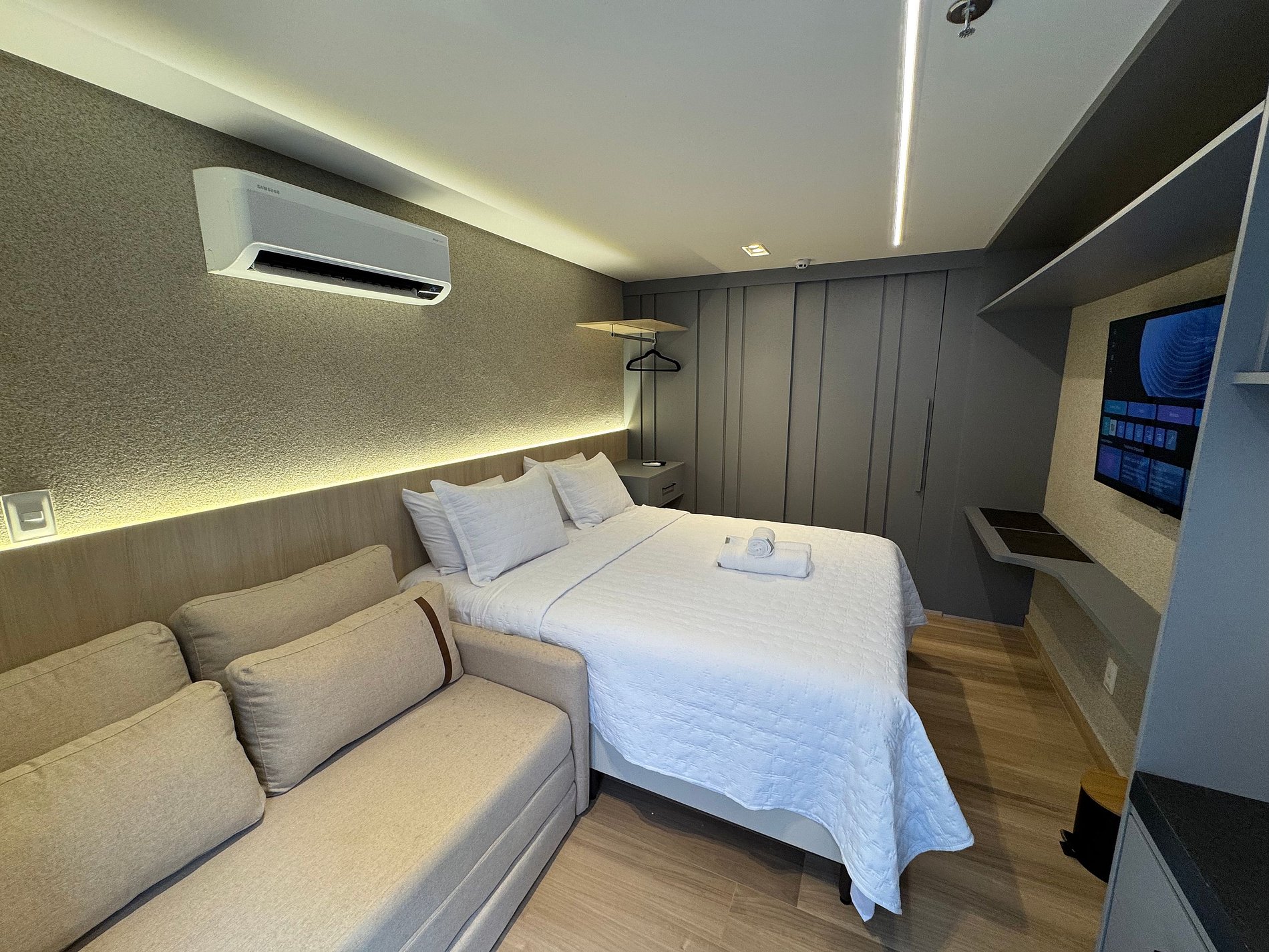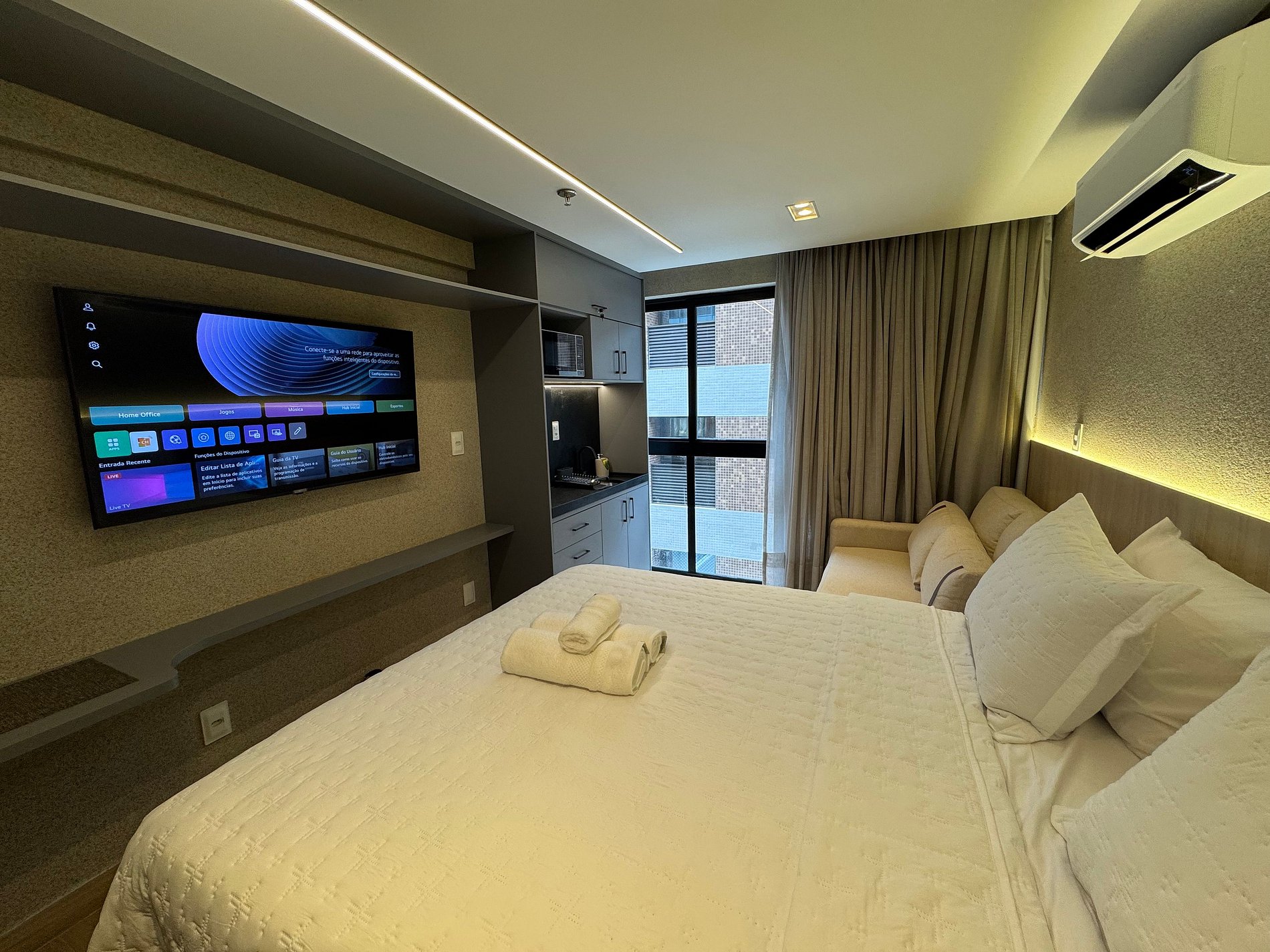 Flat novíssimo e completo no Setai Edition, prédio de alto padrão à beira-mar do Cabo Branco, bairro mais valorizado da Paraíba. Equipado com cozinha completa, cama Queen, mesa e cadeiras, Smart TV de 50" e chuveiro com água quente em sistema direto. Conforto, sofisticação e praticidade para uma experiência única.